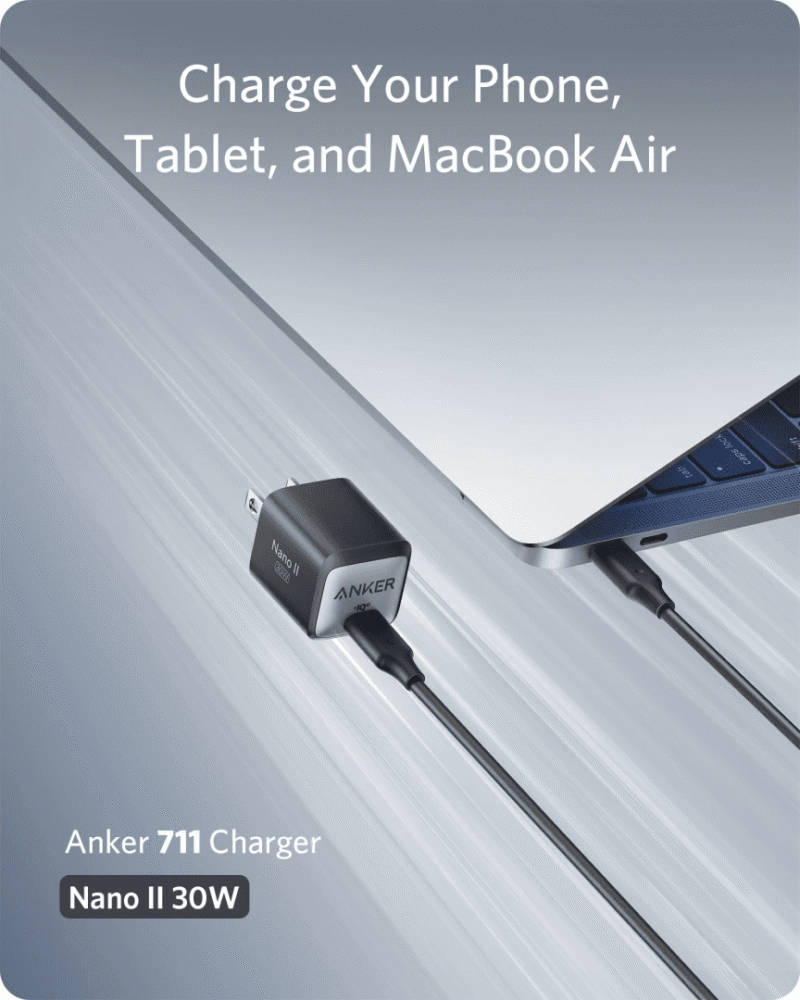 With 30W output power, this charger supports Power Delivery (PD) to charge a wide range of devices. From the latest iPhones and Samsung Galaxy phones to iPads and even MacBook Air, the Nano II 30W ensures fast and efficient charging.