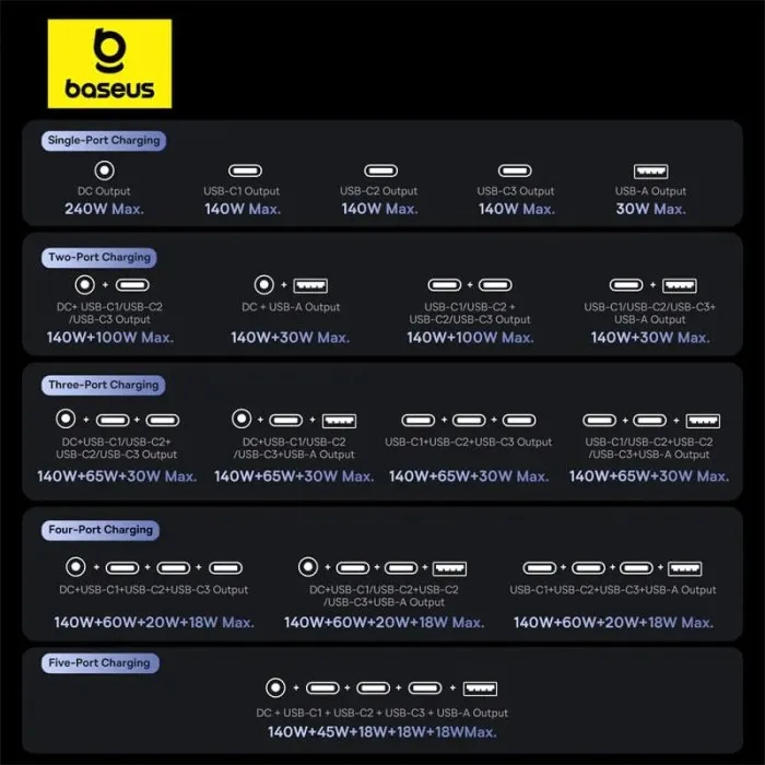 Baseus Digital Fast GaN Charger 240W 3C+U+DC