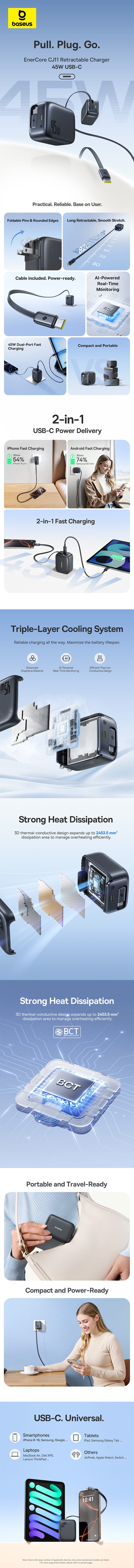 - Baseus EnerCore CJ11 Retractable Charger 2C 45W US JP