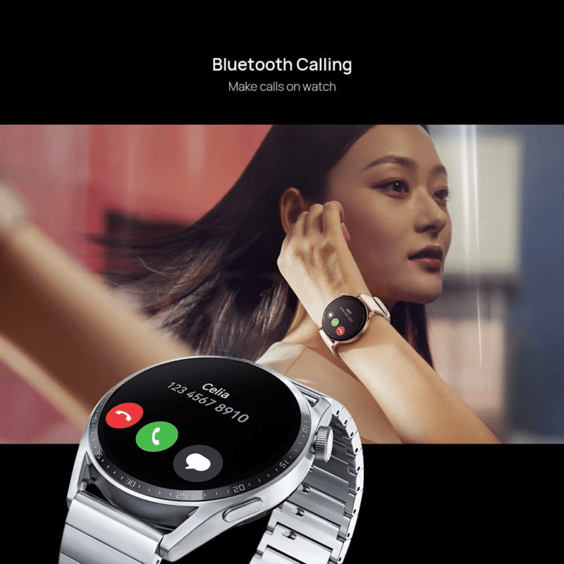 Crafted with a stainless steel case and sleek finishing, the GT 3 combines durability with elegance. The 1.43-inch AMOLED display ensures sharp, vibrant visuals with customizable watch faces for any style.