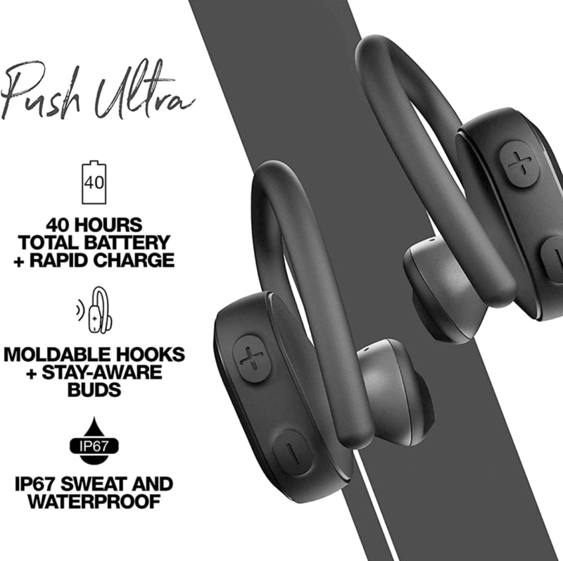 Push Ultra earbuds redefine freedom. Freedom to move, sweat, explore and take your music farther than ever. And with up to 6 hours of playtime (and 34 more in the case), that’s pretty far.