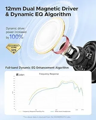 - 12mm Dual-Magnet Driver& dynamic EQ for clear highs and deep bass