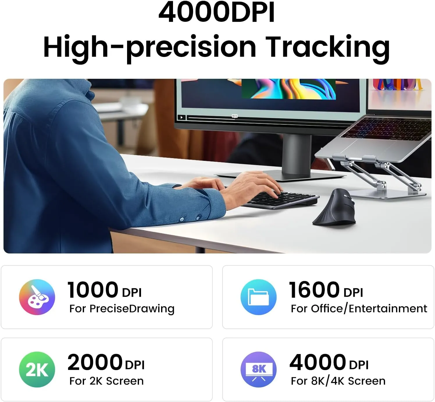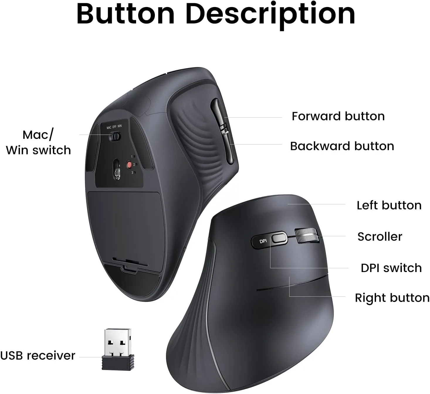 - Ergonomic Design: UGREEN vertical mouse is designed with an ergonomic shape that contours the natural curvature of your hand, providing a comfortable and fatigue-free grip