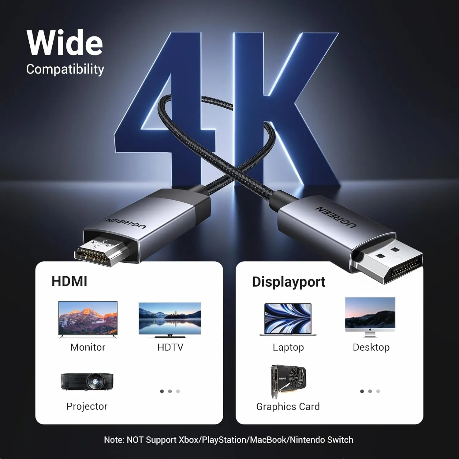 The UGREEN 25491 bridges the gap between DisplayPort 1.2 devices and HDMI 2.0 displays, delivering pristine 4K resolution at 60Hz with HDR10 support for breathtaking color depth. Unlike passive adapters, this active cable maintains pixel-perfect image quality across the full 3-meter length.