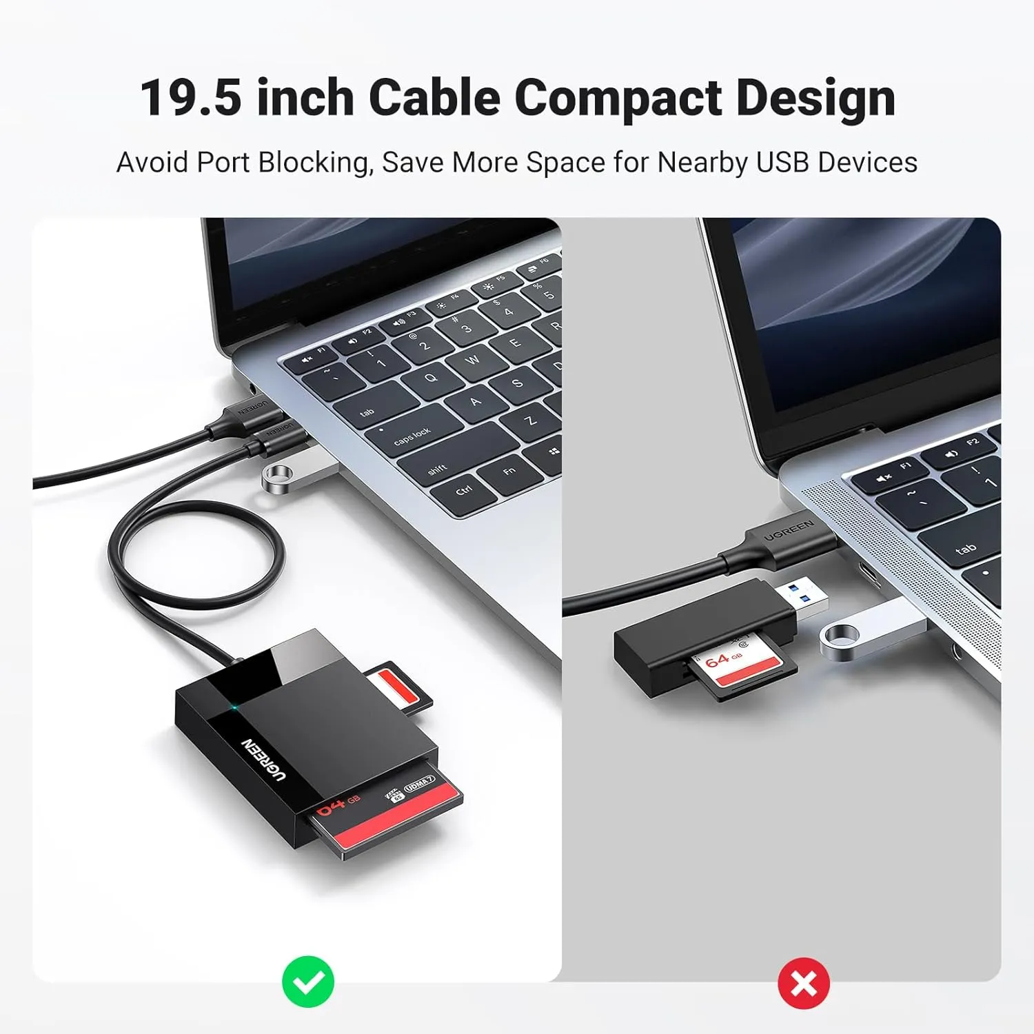- Compact Design: 2.17 2.68 0.59 inches/ 1.7 ft cable, carry it anywhere. UGREEN USB 3.0 SD Card Reader is a great addition for workers on the go