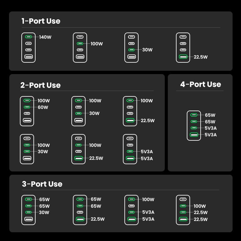 4 in 1 Smart Charging: With 3 USB C ports and 1 USB A port, fast charging four of your devices at the same time with an intelligent current distribution system, provides a total of up to 160W power